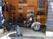そして展示場をさらに直進していくと、なんと、ハーレーダビッドソンのガレージが見えてきました。